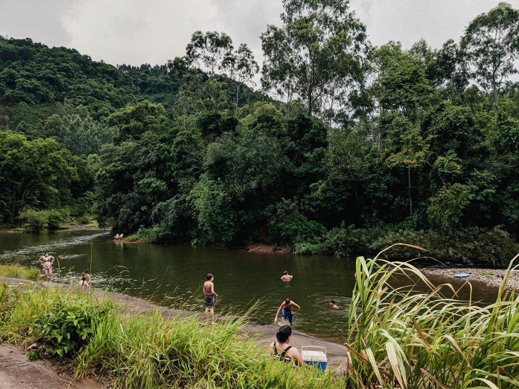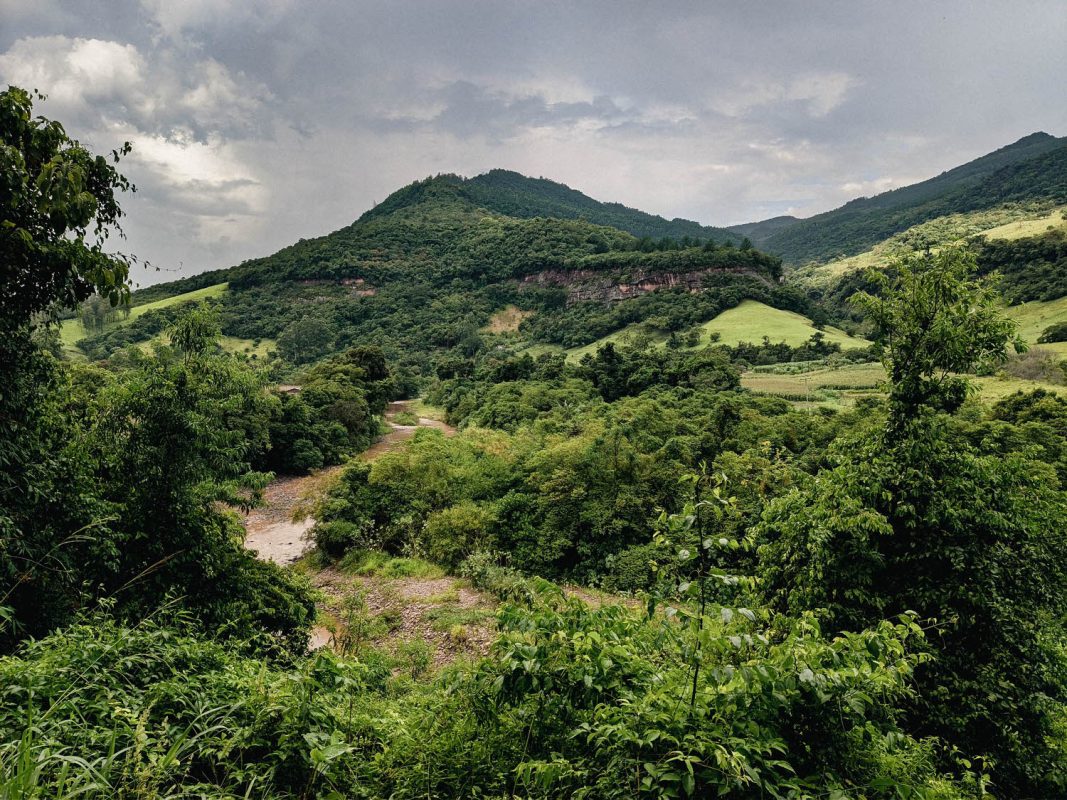 Alimentados, reabastecidos de água e um pouco mais descansados, voltamos a estrada pro trecho que, na teoria, seria a parte mais fácil. Cerca de 2kms adiante, passamos pela Cascata das Três Quedas, e acessamos novamente uma estrada de terra, onde começava a nossa descida. Até ali, tudo nos fazia pensar que seria tranquilo… e foi ai que o tempo começou a virar.