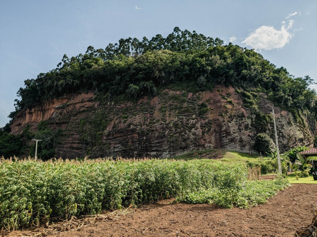 Seguindo pela estrada que costeava o Arroio da Areia, o trecho permaneceu plano por mais alguns quilômetros. Porém, quando cruzamos a última ponte através deste arroio, começou a subida. E alí vimos que claramente haviamos subestimado a dificuldade que nos esperava. O sol forte não ajudava, e o tempo bastante abafado também não. Paramos algumas vezes já bem cansados, e o receio que as nossas 3 garrafas de água não seriam suficientes começou a virar certeza.