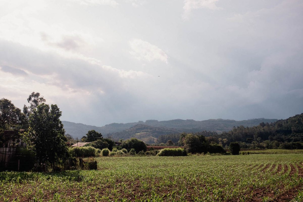 Completamente molhados e com barro até a cabeça, seguimos por uma estrada que costeava o Rio dos Sinos. O cenário pós temporal foi mudando a medida que nos afastavamos dos morros, até o ponto em que o chão voltou a ficar seco, pois alí ainda não havia nem chovido até então. Os últimos 20km até a chegada foram os mais tranquilos. Aproveitamos o trajeto para curtir um pouco mais daquelas paisagens rurais com a luz do fim de tarde. Naquela altura, até o sol já estava de volta.